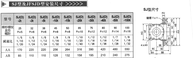 SJ蝸輪絲桿升降機是我公司參照國外公司的產品而設計生產的新型絲桿升降機,該產品是一種起重部件,和其他系列絲桿升降機相比具有結構緊湊、體積小、安裝方便、輸入形式多樣、可靠性高、壽命長等許多優點,具有起升 下降及借助軸件驅動,反轉等多種功能,可單臺使用或多臺組合使用,該產品可以利用電動機或者其他驅動裝置驅動,也可以手動,廣泛應用與冶金、機械、水利、醫療、化工等行業。