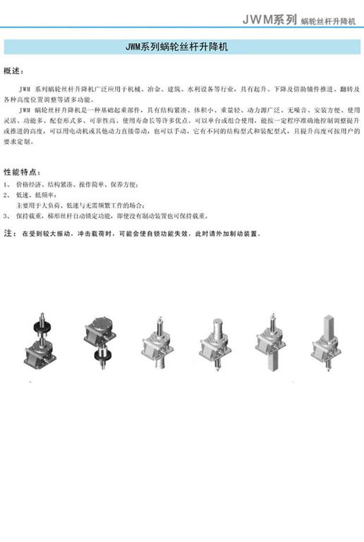 JWM系列蝸輪絲桿升降機產品概述及性能特點