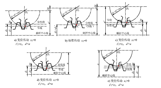 2)變位前后,蝸桿傳動的中心距不變